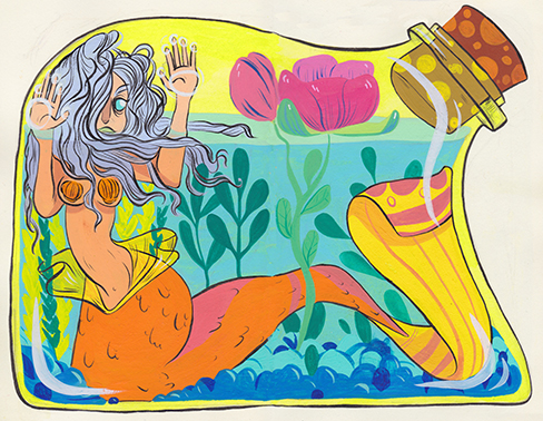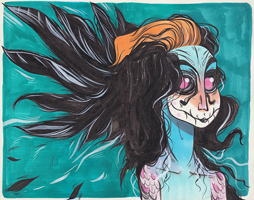 Gouache and ink on paper.